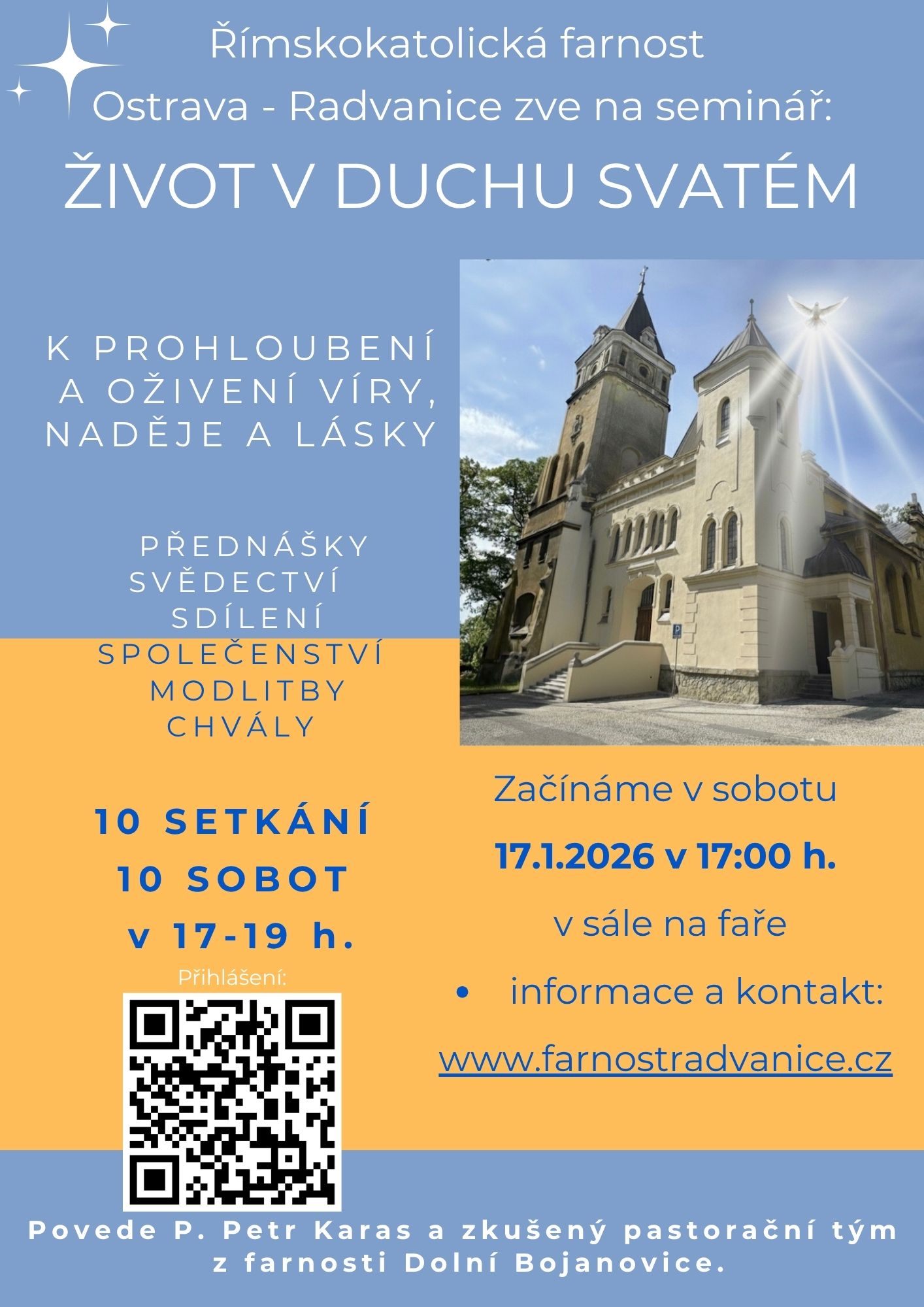 Srdečně vás zveme na seminář "Život v Duchu svatém", který otevíráme v sobotu 17. ledna 2026.